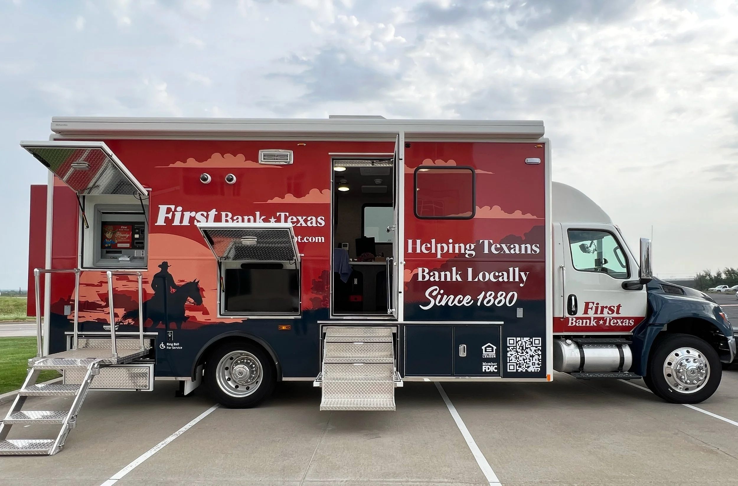 First Bank Texas rolls out a new mobile banking branch, offering full-service banking, financial education, and personal support to communities from DFW to Abilene.